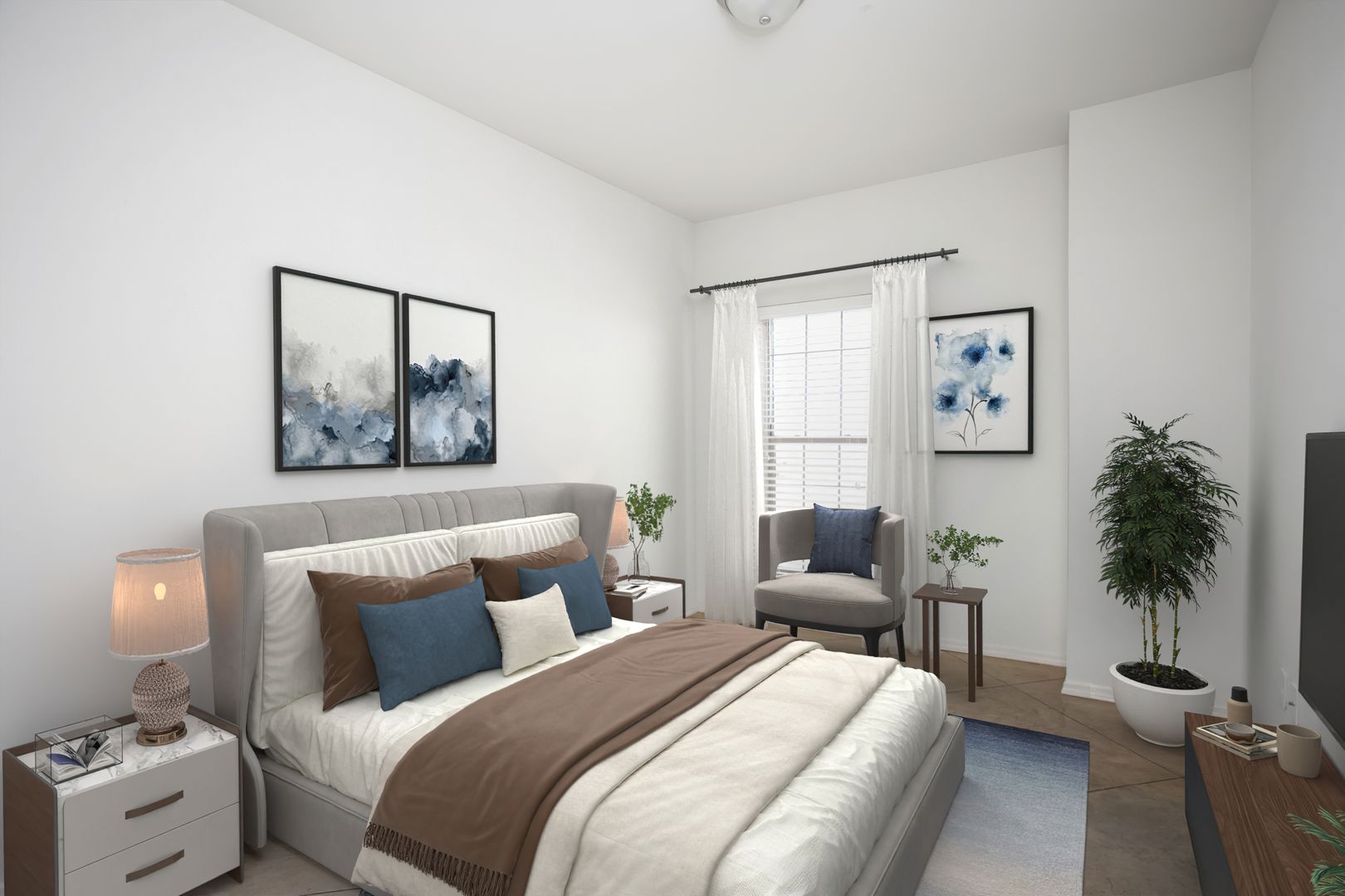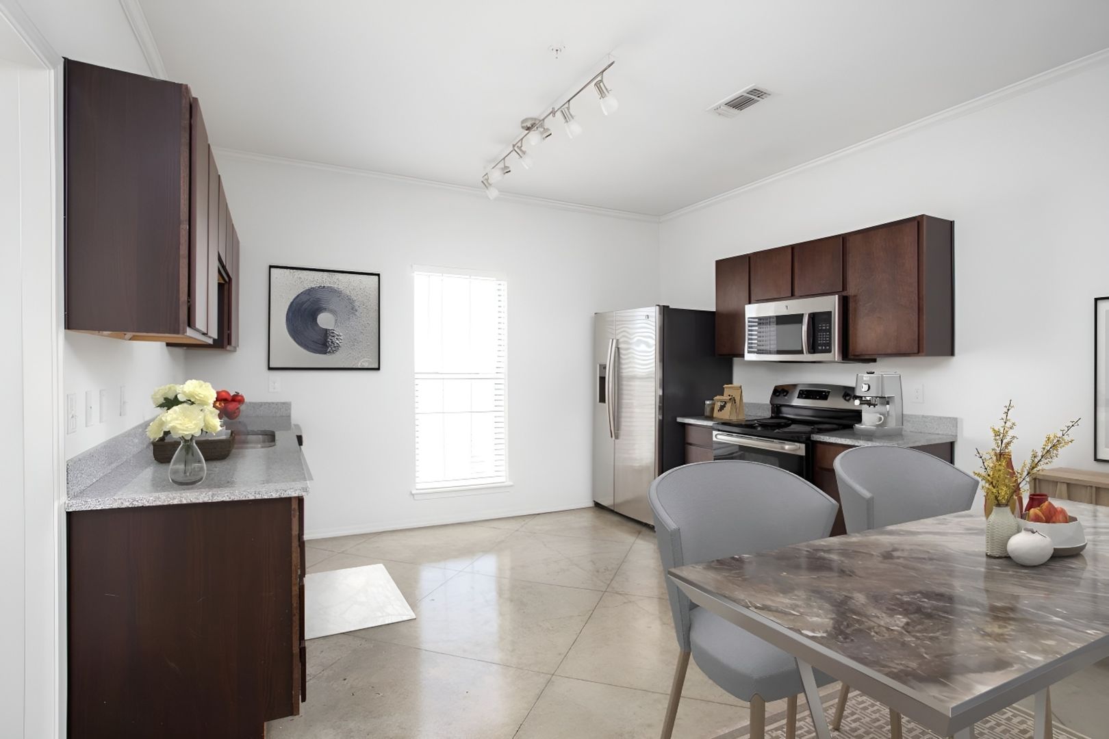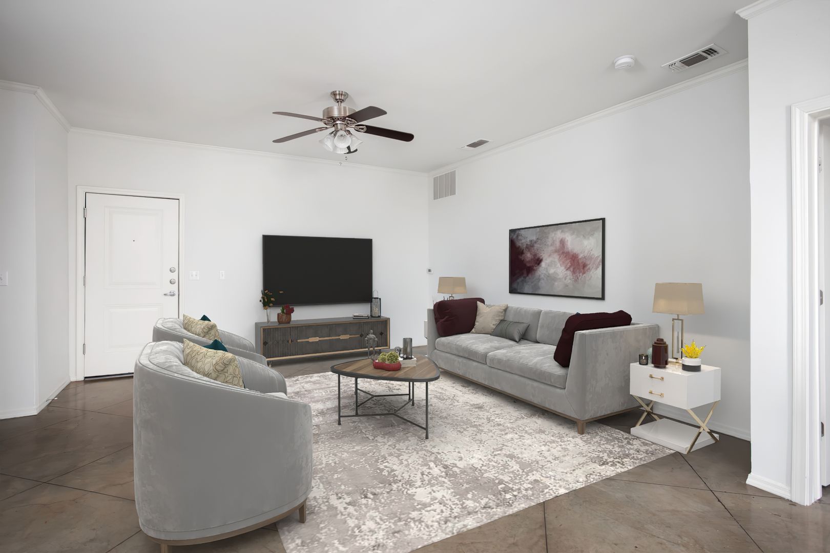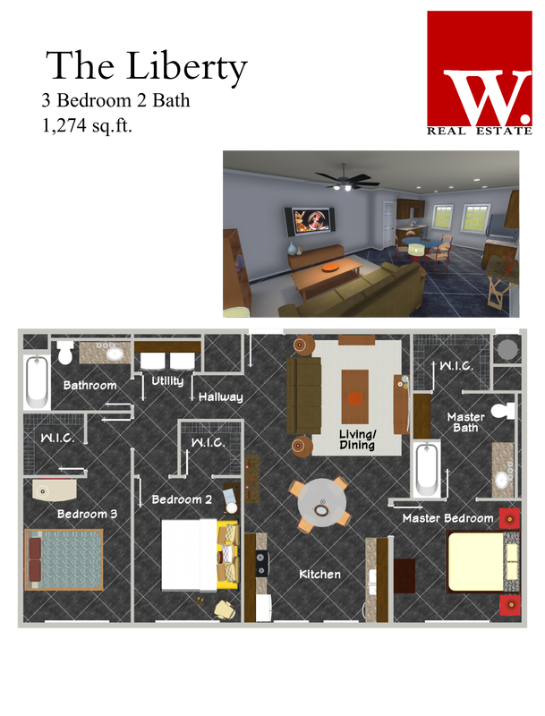 Our Liberty is the perfect three bedroom, two bathroom unit with the right amount of living space. The master bedroom offers a spacious closet and private bathroom. The unit comes with easy-to-clean stainless steel appliances and washer and dryer connections. In addition, each Town Square Village lease comes with a membership to the nearby VERDURE health club and access to our exclusive W. Real Estate REAP program, which can allocate 20% of your monthly rent toward the purchase of a Bluehaven home, restrictions apply.