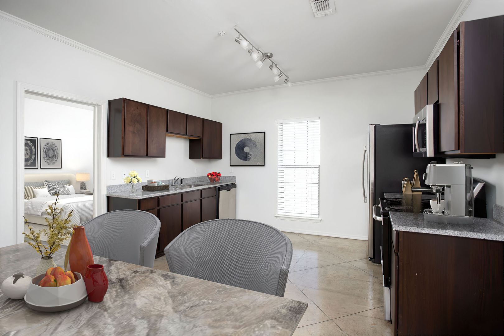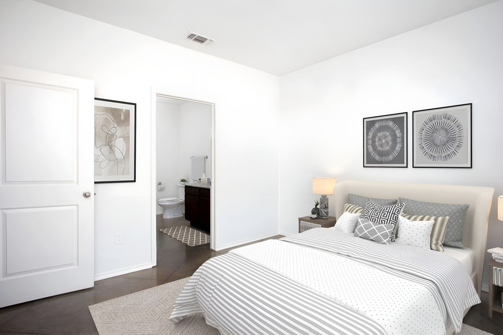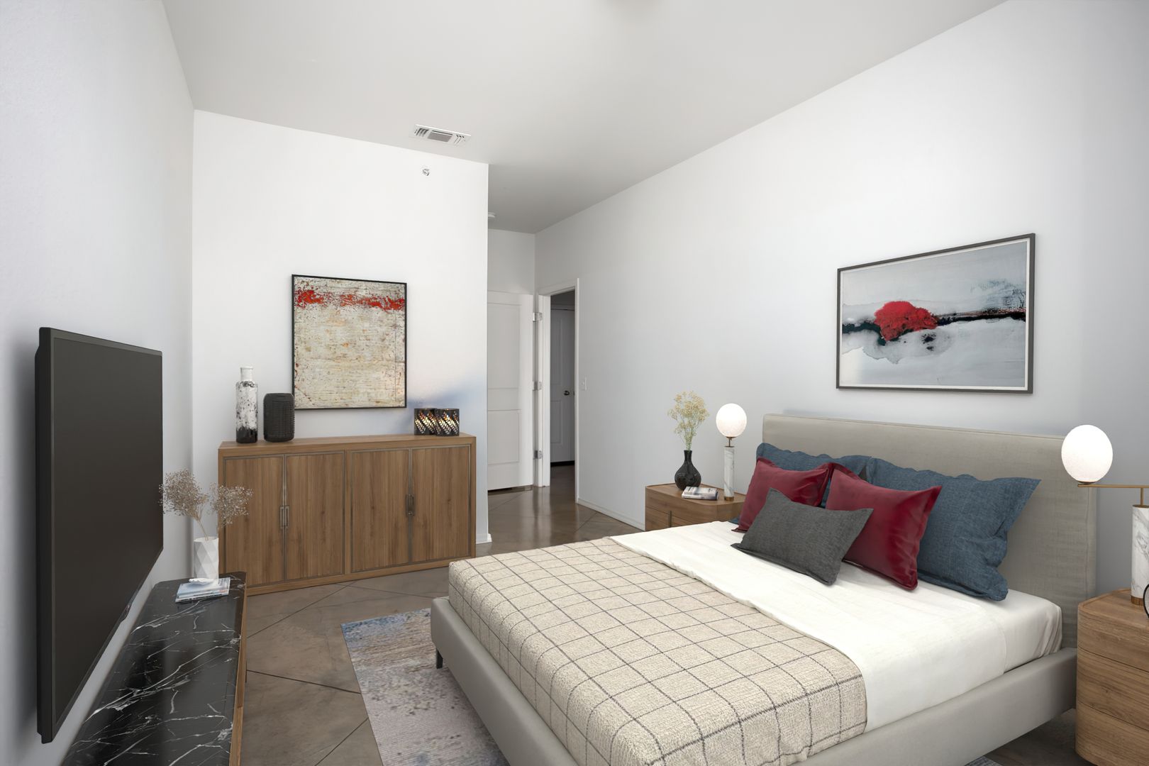 Our Liberty is the perfect three bedroom, two bathroom unit with the right amount of living space. The master bedroom offers a spacious closet and private bathroom. The unit comes with easy-to-clean stainless steel appliances and washer and dryer connections. In addition, each Town Square Village lease comes with a membership to the nearby VERDURE health club and access to our exclusive W. Real Estate REAP program, which can allocate 20% of your monthly rent toward the purchase of a Bluehaven home, restrictions apply.